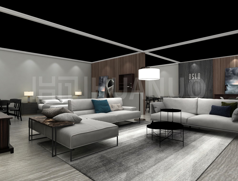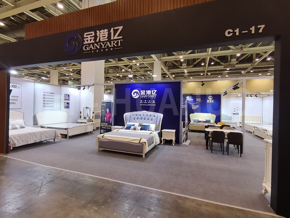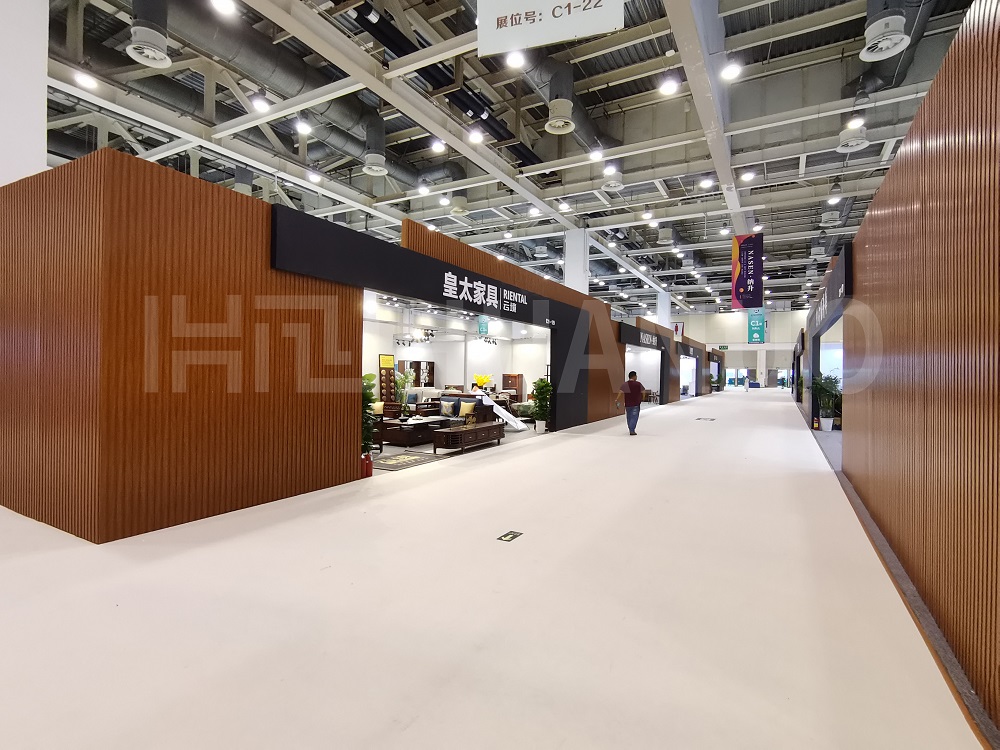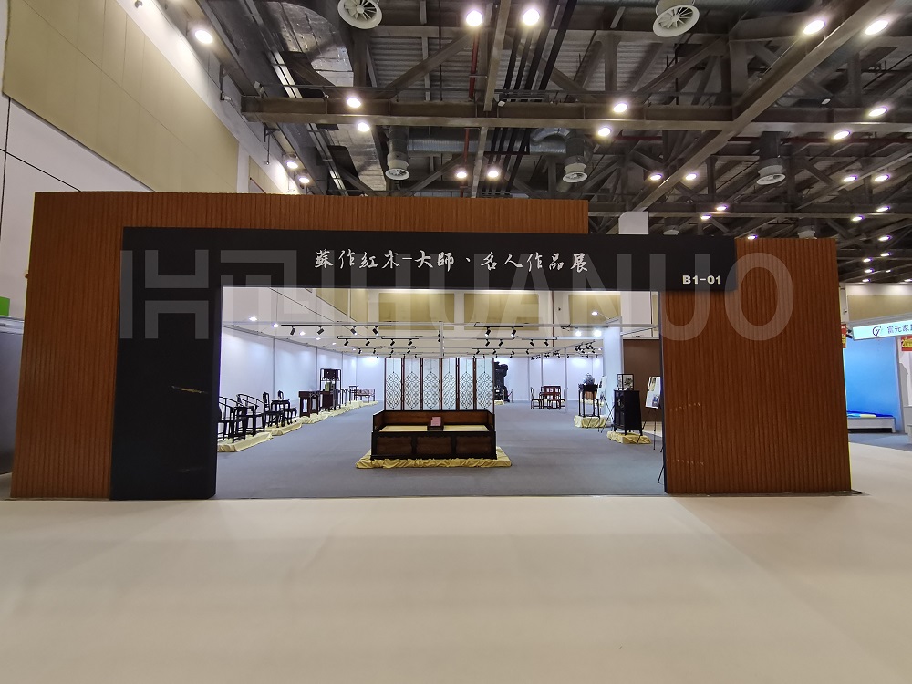 为践行“绿色搭建、绿色办展”的理念,本次苏州家具展览会我们采用绿色环保、可重复使用的方铝型材与热转印布结合木质门头制作展厅,优雅而不失大气。